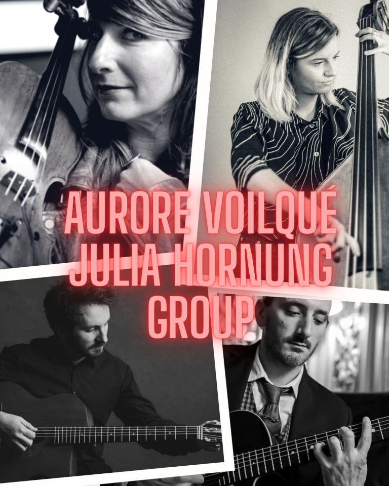 Die Aurore Voilqué & Julia Hornung Group knüpft an die Tradition um Django Reinhardt an und zeigt die ganze Vitalität dieser Musik: akustisch, beweglich und getragen von spürbarer Spielfreude. Geige und Gesang, Gitarren und Kontrabass greifen selbstverständlich ineinander, reagieren aufeinander und entwickeln einen Groove, der ebenso leichtfüßig wie präzise ist. Die Band fühlt sich im Jazzclub genauso zuhause wie auf der Konzertbühne oder im Tanzsaal – nah am Publikum, offen im Klang und immer im Moment.