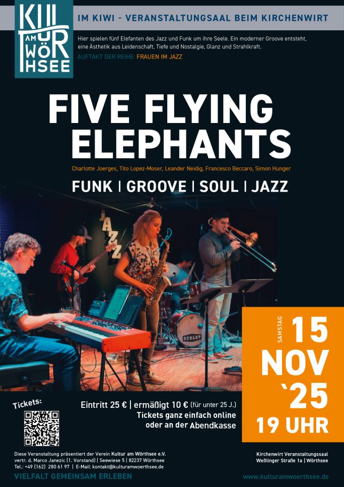 Die Five Flying Elephants aus Berlin haben im November 2025 die Jazz Reihe in der KiWI Jazz Lounge eröffnet und wir haben sie quasi zum einjährigen Jubiläum wieder eingeladen.