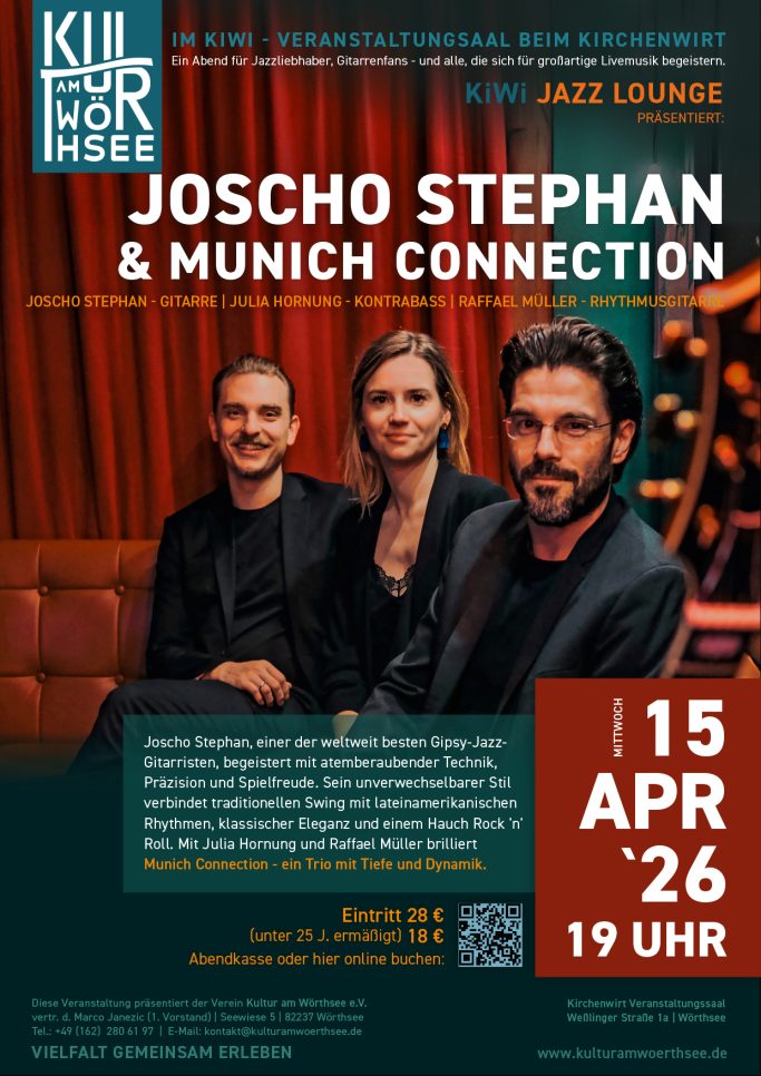 Gemeinsam formen sie die „Munich Connection“ – ein Trio, das virtuosen Gypsy Jazz mii frischer Spielfreude und charakterstarker Ensemblekultur verbindet.