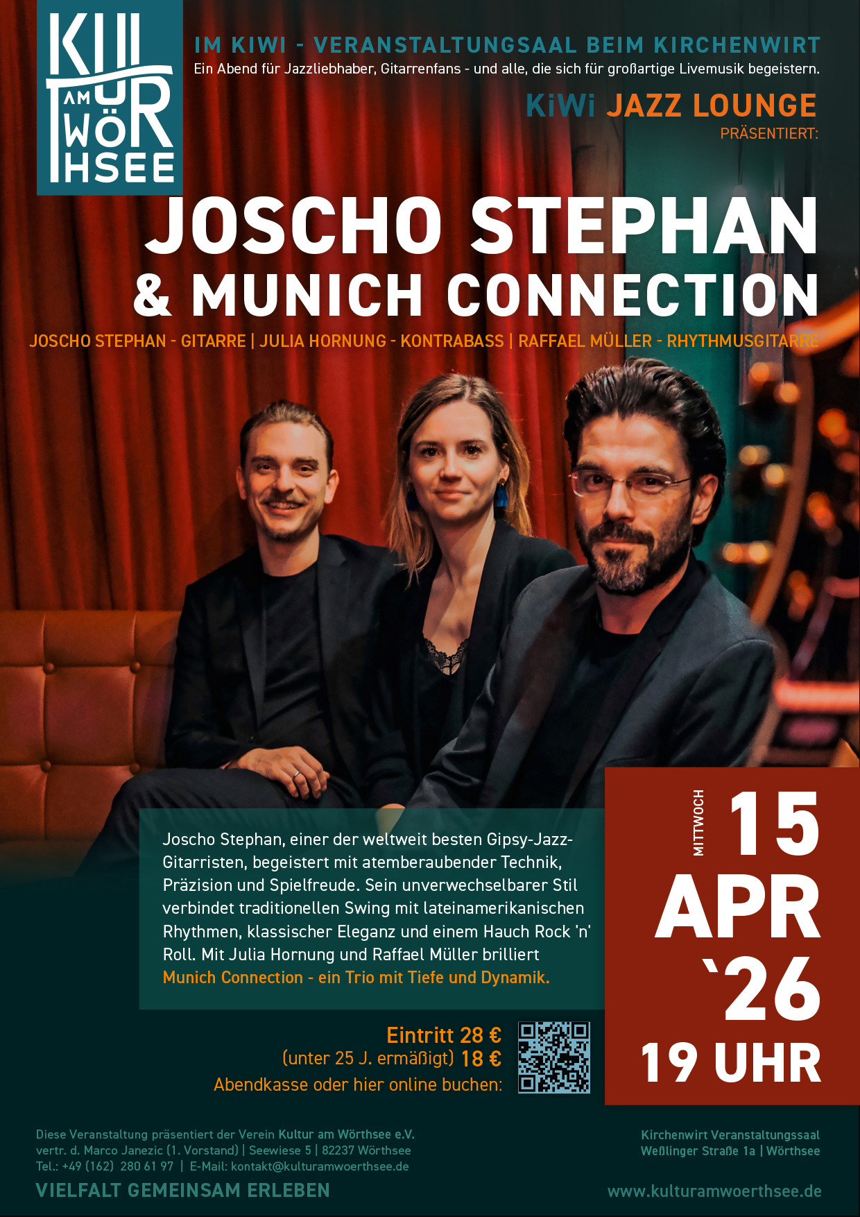 TICKETS 28€ / 19,50€ (ermäßigt bis 25 Jahre): https://www.tickettailor.com/events/kulturamwrthseeev/2091515